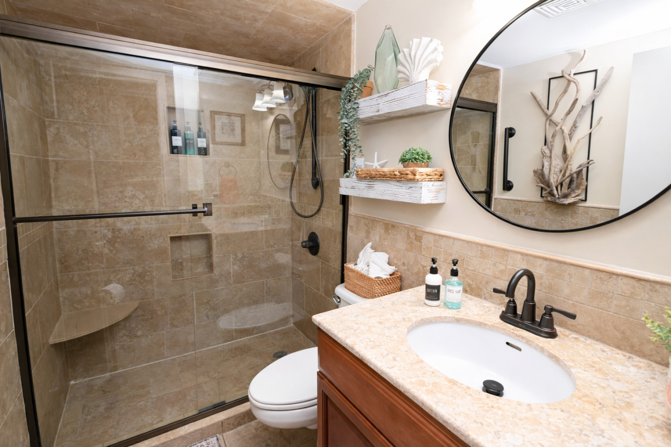 Renovated bathroom with walk-in shower