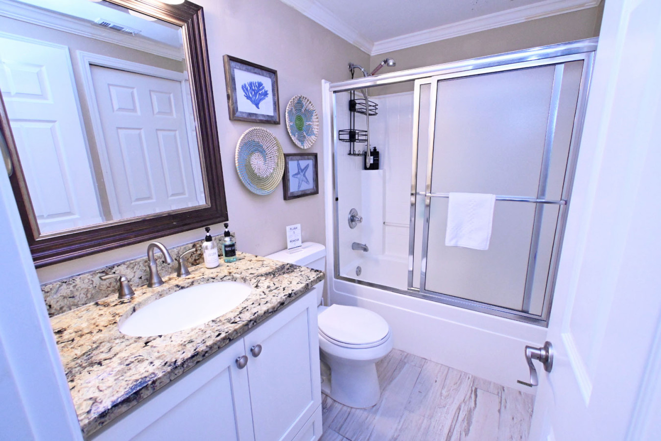 Sandpiper Cove Unit 4115 Beach Getaway in Destin, FL! The spacious 2-bedroom, 2-bathroom condo offers everything you need for a relaxing and memorable stay on the Emerald Coast. Comfortably accommodating up to 6 guests, this beautifully appointed unit is the perfect home away from home in the heart of Destin. Conveniently located on Sandpiper Cove’s canal, Unit 4115 provides a peaceful retreat while being just steps away from all the fun and adventure the resort has to offer. Boaters dream! This unit is on the canal and has the longest driveway in Sandpiper Cove. Plenty of extra parking with a boat trailer. Enhance your vacation experience with easy access to a variety of rental options just minutes away! Explore the beautiful surroundings with golf carts, jet skis, and a wide selection of beach gear available for rent from nearby companies. Whether you're looking for adventure on the water or a fun way to explore the area, everything you need is conveniently located nearby to make your stay unforgettable! 🍽 KITCHEN Fully equipped kitchen with stainless steel appliances and granite countertops Full-size refrigerator, oven, stove, microwave, and dishwasher Coffee maker compatible with regular coffee and Keurig pods Stocked with spices, cooking spray, aluminum foil, Ziplock bags, paper towels, and dishwashing supplies 🛋 LIVING AREA Cozy queen-sized sleeper sofa Flat-screen Smart TV Open layout 🍽 DINING AREA Dining table seats six 🛏 PRIMARY BEDROOM King-size bed Spacious closet Private en suite bathroom 🛏 GUEST BEDROOM Queen-size bed Walk-in closet Flat-screen TV 🛁 BATHROOMS Guest bathroom with granite countertops Master en suite bathroom updated with granite countertops Provided luxury towels, hand soap, shampoo, conditioner, and body wash 🌴 BALCONY / PATIO / DECK Private balcony with views of the lush surroundings Views of seasonal Thursday night fireworks from the front deck 🧺 LAUNDRY Separate laundry room with washer and dryer Laundry pods supplied This condo’s highlights: - Fully stocked kitchen - Spices - Cooking Spray - Aluminum foil - Ziplock bags - Paper towels (at least one roll) - Dishwasher pods - Dish Soap - Luxury towels and linens - Hair Dryer - Toilet paper (at least one roll per bathroom) - Beach towels - Laundry pods - Golf Clubs & balls - Pickle Ball paddles & balls -Smart TV -4 beach chairs located underneath steps Explore Destin Sandpiper Cove's location offers endless possibilities for adventure and relaxation. Enjoy the nearby private beach, go for a dolphin cruise, or spend the day at Big Kahuna’s Waterpark. Explore local dining options, including seafood restaurants with stunning waterfront views, or take a fishing trip to experience Destin's title as the "World’s Luckiest Fishing Village." Sandpiper Cove Onsite Amenities 🏖 Private Beach🏊♀️ 5 Pools (2 heated) 🥩 Grills (located at pools and beach)💦 3 Hot Tubs ⛳️ FREE 3-Par Golf Course🎾 Tennis 🏓 Pickleball 👣Shuffleboard ⭐️ Bocce Ball 🫴🏻Horseshoes ⚓️ Boat Ramp 🚤 Boat Parking 🦐 Louisiana Lagniappe 🍔 Sand Flea (open seasonally Mar.-Oct.) ⛱ Beach Service & Rentals (open seasonally Mar.-Oct.) Attraction / Area - Approx. Drive Time (times may vary due to traffic) Beach 🏖 1-2 minutes (FREE private parking available) Workout Anytime 🏋️ 3 minutes Winn-Dixie 🛒 3 minutes Target 🛒 3 minutes Luxe Nail Salon 💅 3 minutes Publix 🛒 4 minutes Big Kahuna's Water Park (with a putt putt) ⛱ 7 minutes Dog Park 🐶 7 minutes The Track (Go Karts) 🏎 8 minutes Walmart 🛒 9 minutes Destin History and Fishing Museum 🪸 10 minutes Helicopter Tours 🚁 10 minutes Harborwalk (restaurants, shops, fishing, etc.) ⛴ 11 minutes Destin Commons (Shopping) 🛍️ 11 minutes Sandestin Golf Course ⛳️ 12 mintues AMC Movies 📽 12 minutes Emerald Coast Wine Cellars 🍷 17 minutes Gulfarium 🐬 15 minutes Silver Sands Outlet Mall 🛍️ 17 minutes Baytowne Wharf (Shopping & Dining) 🛍️ 24 minutes Grand Blvd. Shopping Center (luxury shops & dining)🎁 20–25 minutes Sacred Heart Hospital 🏨 22 minutes Eglin Air Force Base🎖️ 35 minutes Destin/FWB Airport (VPS) ✈️ 30 minutes 30A Beaches 🏖 30-35 minutes Panama City Beach 🏖 1 hour, 18 minutes --- Important Information -This condo is on the first floor; however, please note that there are 8 stair steps required to access the unit. There is no elevator available. - YOU MUST BE 25 YEARS OR OLDER TO BOOK!!!! -If the primary guest will not be present at check-in, at least one guest must be 25 years old or older to check-in. Please inform your host in advance so we can notify the gate and ensure proper access for your group. - NO SMOKING OR PETS allowed inside the condo or on the balcony (violations will result in charges, eviction, and forfeiture of refund). - To reserve a boat dock space, visit the Sandpiper Cove website. Trailer parking is not permitted onsite, but arrangements can be made at local facilities. --- Book Your Stay Today! Whether you’re seeking a peaceful escape or an adventure-packed vacation, Sandpiper Cove Unit 4115 is your perfect choice. With thoughtful amenities, a prime location, and access to resort luxuries, this condo promises an unforgettable experience in Destin, FL. Book now and start planning your dream vacation!