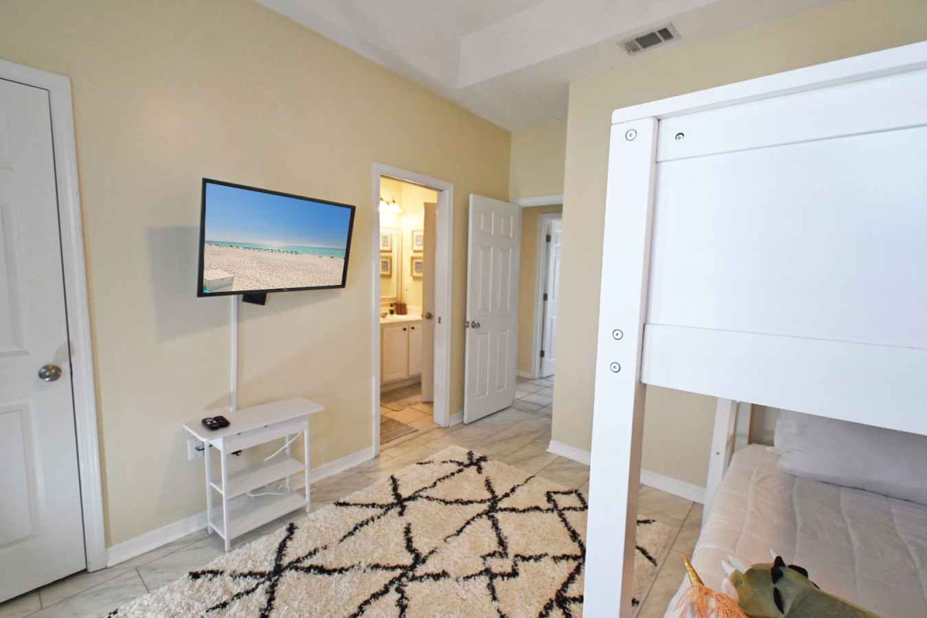 Located in the heart of Destin, this updated 2 bedroom, two bathroom is in the 43-acre gated Sandpiper Cove resort. Sandpiper Cove spans from Destin harbor to the sugar-white sands of the Emerald Coast. Private gated beach includes 1100 feet of private beachfront with beach service, beach bar and grill, bathrooms, showers, BBQs, rental kayaks and paddleboards. Bring your boat and launch from the on site boat launch, just steps away! 4231 offers FREE beach service! During the season (March 1- October 31) you will get 2 beach chairs (with leg rests) and an umbrella set up on the beach. This is a $50 per day value! Boaters will love staying at Sandpiper Cove Unit 4231! This unit offers convenient covered parking for your boat, and you can take advantage of the free on-site boat launch. If you need a dedicated spot, canal slips are available for rent at an additional fee. Please note that availability is limited, so be sure to contact the resort directly to secure your spot. On the harbor side, Seascape is a boater's playground and includes a free boat/waverunner ramp, and kayak launch (only steps from the condo!) into Destin Harbor. Call Sandpiper Cove for details on bringing a boat. This condo is close to many restaurants, shopping, and attractions in Destin and even has a water taxi to the Destin HarborWalk Village! PET-FRIENDLY UNIT This unit allows up to 2 DOGS weighing less than 30 pounds—with a nonrefundable pet fee of $100 per pet (plus tax). Additionally, Sandpiper Cove collects a $10 fee per pet on-site. Up-to-date shot records are required at check-in. While pets are allowed in the community, they are not permitted on the beach. Please note that no beaches in Destin or Okaloosa County are pet-friendly. ACCOMMODATIONS The condo is located on the top floor and has 2 bedrooms/2 bathrooms. There is no elevator to this floor. Kitchen As you enter, you'll be greeted by a beautifully updated kitchen with stainless steel appliances, quartz countertops, and all the essentials for preparing gourmet meals. Enjoy the convenience of a full-size refrigerator, oven, stove, microwave, and dishwasher, along with a coffee maker (both regular and Keurig), plus all the cookware and utensils you'll need. The kitchen has an adjoining laundry room includes two full-size washers and dryers for your convenience, complete with laundry tabs. Living Area The living area is perfect for relaxing after a day at the beach, featuring a comfortable sleeper sofa, flat-screen Smart TV, and a dining area that seats four. A bar counter off the kitchen is ideal for casual breakfasts or a cup of coffee, seats three. Balcony Step out onto the private balcony, where you can enjoy views of the marina. Every Thursday night during peak season, you can watch the spectacular fireworks display right from your deck, adding a touch of magic to your evenings. Guest Bedroom The guest bedroom boasts queen-sized bunk beds (sleeps 4), a walk-in closet, a flat-screen TV, and a desk for those who need to catch up on work. The guest bathroom, which connects to this bedroom comes stocked with luxury towels, hand soap, lotion, shampoo, conditioner, and body wash. Master Suite The master suite includes a king-size bed, spacious closet, flat-panel TV, sliding door to the back deck, and a private bath with a combo shower/tub and comes stocked with luxury towels, hand soap, lotion, shampoo, conditioner, and body wash. Bonus Amenities As a bonus, the unit is stocked with extra features, beach towels, pickleball paddles and balls, tennis rackets, a fishing net, and more. Additionally, you can bring your boat and park your trailer right under the condo, making it easy to enjoy a day on the water. Driveway measurements: 9' Height Clearance 55' Length 11.5' Width Whether you're here for relaxation or recreation, Unit 4132 has you covered! PARKING Parking is limited to two (2) vehicles. Trailers can be parked under the condo on site. It is the guest’s responsibility to verify resort requirements. Please contact the resort directly. Dog Friendly - Up to 2 dogs - an additional non-refundable fee of $100/per dog (resort collect an additional $10 per dog at the gate). No dogs on allowed on any beach.ts of shopping nearby, you'll have plenty of opportunities to find that perfect souvenir, gift, or a way to spend time away from the beach. COMMUNITY and BEACH Sandpiper Cove is a stress-free resort with 24-hour security and provides other shared common areas where guests and children can fish, picnic, play yard games, or simply relax in the breeze.Staying at Sandpiper Cove provides access to an array of community amenities. Enjoy a game of golf on our FREE 3-par pitch and putt golf course. Or, enjoy a game of pickle ball at one of our 8 pickle ball courts. Dive into one of the five swimming pools, unwind in the hot tubs, explore the marina, or savor delectable cuisine at the two onsite restaurants – the possibilities for leisure are endless. Immerse yourself in the coastal lifestyle, where bocce ball, shuffleboard, and more await your enjoyment. So, whether you're a golf enthusiast, beach lover, or prefer a friendly game of tennis or pickleball, this vacation rental has it all. DINING, ATTRACTIONS and SHOPPING You can catch a round-trip water taxi directly from the onsite marina to Harborwalk Village, where you can find some unique stores and Destin's most desirable restaurants, including Marina Cafe, AJ's, Boathouse, and Boshamps. Only a few miles drive is the Destin Commons shopping center with many nationwide brand names, a movie theater, and dining options. Everything you need is nearby, and Destin offers so many different recreational activities that there is something for everyone in the family. From arts and culture to eco-tourism, from fine dining to quick bites, shopping and spas, and some of the best fishing in the Gulf. Whether you're here for a relaxing retreat or an adventure-filled vacation, Sandpiper Cove Unit 4231 has everything you ne