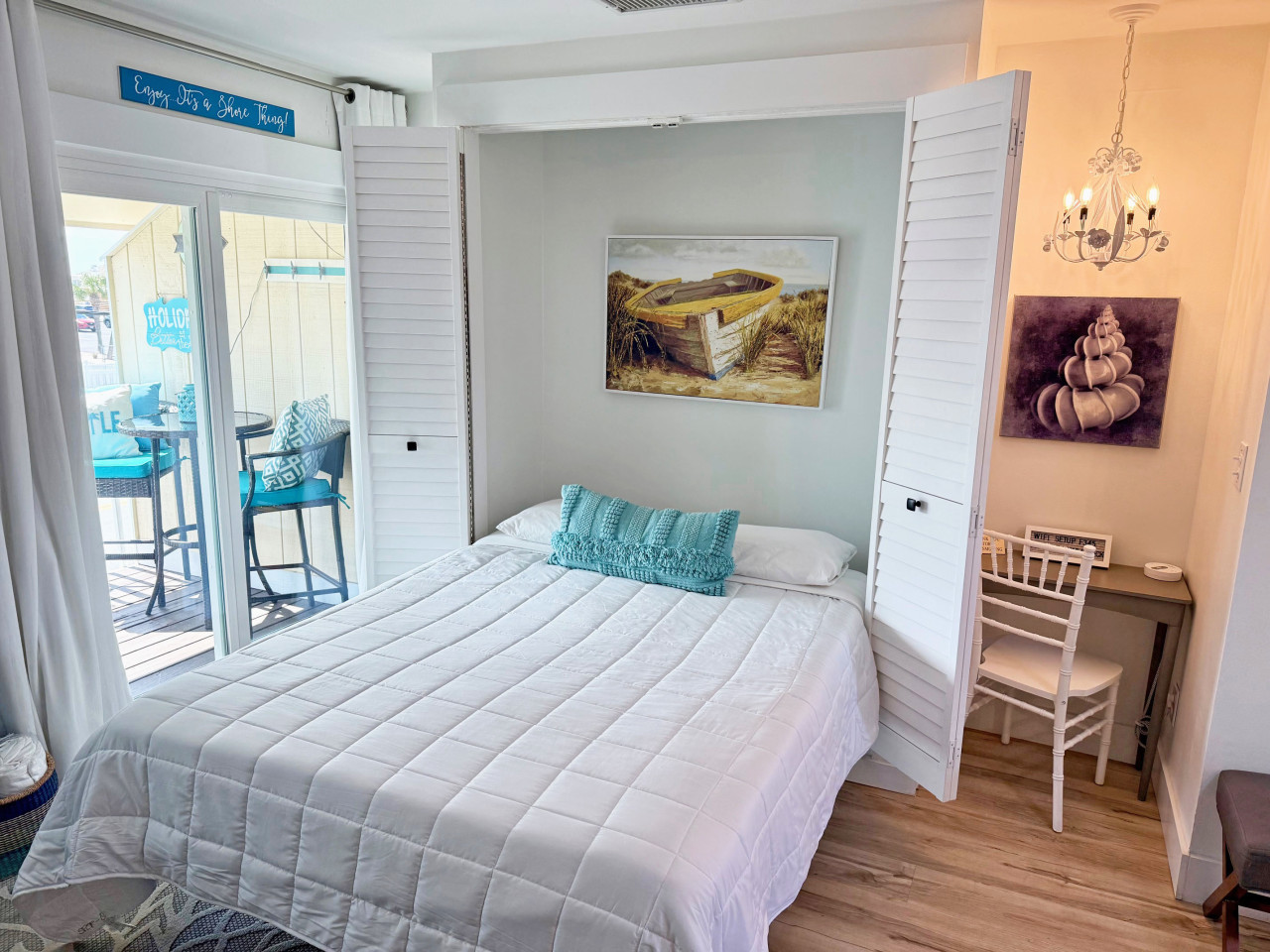 August 2025 5.00Nice little studio apartment. Murphy bed was surprisingly very comfortable! Our free BEACH CHAIR set up every morning was a huge plus fir us. No carrying beach chairs to the beach. My kind of beach vacation!