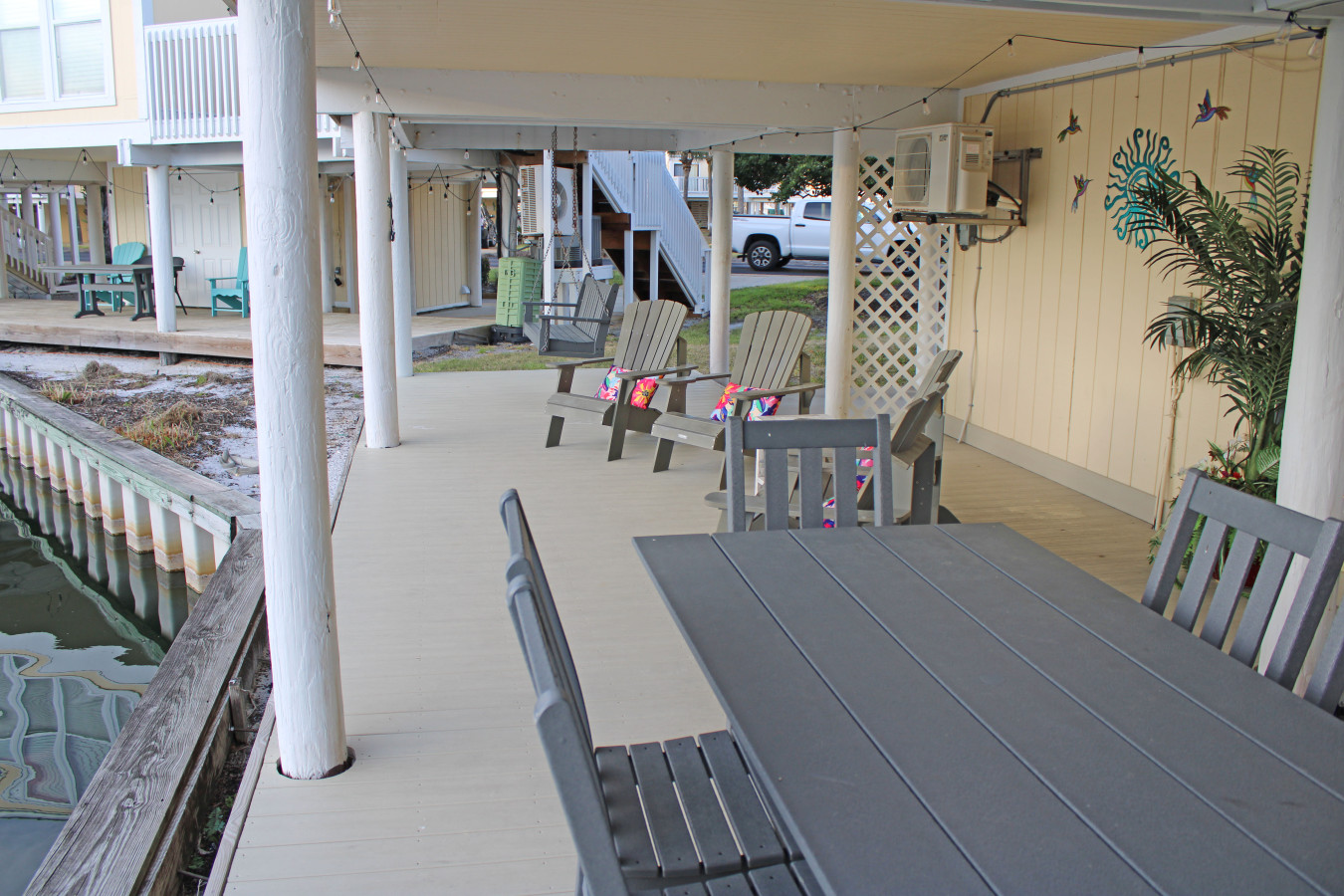 July 2025 5.00House above expectations. Clean with nice furnishings. Plenty of space. Loved the deck underneath the house. Had coffee and watched the ducks and turtles every morning. Closet of beach items, pickle ball accessories, and golf clubs very helpful. Extra fan in each room a bonus. Great area with everything to do close. Loved that we could walk to beach. Loved the neighborhood tiki restaurant right on beach. Excellent food and service at the Louisiana Lagniappe. Will def stay here again.