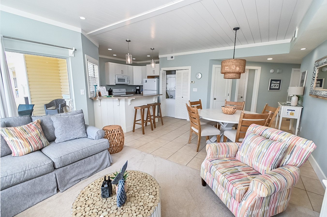 Welcome to Sandpiper Cove 9111 – Updated 2BR Beachwalk Condo in the Heart of Destin! Nestled in the highly desired Beachwalk area of the Sandpiper Cove Resort, Unit 9111 is a completely renovated two-bedroom, two-bathroom condo that offers comfort, charm, and convenience—just a short stroll from the resort's private beach access and the emerald waters of the Gulf of Mexico. 🛋 LIVING AREA Living room with sofa sleeper, cozy chair, and loveseat Large smart flat-screen TV Spacious dining area with table seating for six Additional dining nook in the kitchen 🍽 KITCHEN Fully equipped kitchen with full-size appliances Provided cookware and utensils 🛏 PRIMARY BEDROOM King-size bed Flat-screen TV Private patio with seating for two 🛏 GUEST BEDROOM Queen-size bed Twin bunk beds Flat-screen TV 🛁 BATHROOMS Updated master bathroom with shiplap detailing and bath-shower combo Second updated bathroom with walk-in shower Provided luxury bath towels, full-size shampoo, conditioner, body wash, hand soap, and lotion 🌴 BALCONY / PATIO / DECK Main patio with dining space Private patio off the master bedroom Whether you're here to relax on the beach, explore Destin's attractions, or enjoy the comforts of a beautifully updated condo, Unit 9111 is your perfect coastal getaway. Book now and escape to the Emerald Coast in style! Sandpiper Cove community offers additional amenities, including a pristine beach just a short walk away, multiple swimming pools, pickleball, tennis, shuffleboard, bocce ball, a FREE 3-par golf course, and on-site dining options. Enhance your vacation experience with easy access to a variety of rental options just minutes away! Explore the beautiful surroundings with golf carts, jet skis, and a wide selection of beach gear available for rent from nearby companies. Whether you're looking for adventure on the water or a fun way to explore the area, everything you need is conveniently located nearby to make your stay unforgettable! For those seeking excitement during their vacation, Destin provides a plethora of activities including parasailing, scuba diving, cruises, and dolphin watching. Additionally, in close proximity to Sandpiper Cove, you'll find numerous golf courses, a water park, a fishing museum, and an aquarium. Destin Commons Shopping Mall, a charming shopping village complete with an AMC movie theater, is just a short 10-minute drive away. Please note that guests must be 25 years old to rent at Sandpiper Cove, in accordance with resort policy. Destin is renowned for its pristine beaches, world-class fishing, and vibrant culture. Whether you're soaking up the sun on the sand, exploring local shops and restaurants, or indulging in water sports and activities, this vacation rental serves as the perfect home base for your Destin adventure. Sandpiper Cove Onsite Amenities 🏖 Private Beach🏊♀️ 5 Pools (2 heated) 🥩 Grills (located at pools and beach)💦 3 Hot Tubs ⛳️ FREE 3-Par Golf Course🎾 Tennis 🏓 Pickleball 👣Shuffleboard ⭐️ Bocce Ball 🫴🏻Horseshoes ⚓️ Boat Ramp 🚤 Boat Parking🦐 Louisiana Lagniappe 🍔 Sand Flea (open seasonally Mar.-Oct.)⛱ Beach Service & Rentals (open seasonally Mar.-Oct.) Attraction / Area - Approx. Drive Time (times may vary due to traffic) Beach 🏖 1-2 minutes Workout Anytime 🏋️ 3 minutes Winn-Dixie 🛒 3 minutes Target 🛒 3 minutes Luxe Nail Salon 💅 3 minutes Publix 🛒 4 minutes Big Kahuna's Water Park (with a putt putt) ⛱ 7 minutes Dog Park 🐶 7 minutes The Track (Go Karts) 🏎 8 minutes Walmart 🛒 9 minutes Destin History and Fishing Museum 🪸 10 minutes Helicopter Tours 🚁 10 minutes Harborwalk (restaurants, shops, fishing, etc.) ⛴ 11 minutes Destin Commons (Shopping) 🛍️ 11 minutes Sandestin Golf Course ⛳️ 12 mintues AMC Movies 📽 12 minutes Emerald Coast Wine Cellars 🍷 17 minutes Gulfarium 🐬 15 minutes Silver Sands Outlet Mall 🛍️ 17 minutes Baytowne Wharf (Shopping & Dining) 🛍️ 24 minutes Grand Blvd. Shopping Center (luxury shops & dining)🎁 20–25 minutes Sacred Heart Hospital 🏨 22 minutes Eglin Air Force Base🎖️ 35 minutes Destin/FWB Airport (VPS) ✈️ 30 minutes 30A Beaches 🏖 30-35 minutes Panama City Beach 🏖 1 hour, 18 minutes This condo includes: - Fully stocked kitchen - Spices - Cooking Spray - Aluminum foil - Ziploc bags - Paper towels (at least one roll) - Dishwasher pods - Dish Soap - Luxury towels and linens - Toilet paper (at least one roll per bathroom) - Beach towels - Laundry pods - Golf Clubs & balls Please note: -YOU MUST BE 25YRS OR OLDER AND STAY TO BOOK!!!!!!! -If the primary guest will not be present at check-in, at least one guest must be 25 years old or older to check-in. Please inform your host in advance so we can notify the gate and ensure proper access for your group. -Each condominium is allocated only two parking spaces and two parking passes per unit. There is no assigned parking. -To secure a boat dock space, please visit the Sandpiper Cove website and submit a request. Please note that there is a fee for renting dock space. Please be aware that trailers or boats cannot be parked inside Sandpiper Cove. For trailer, boat, or jet ski parking arrangements, we recommend contacting facilities in the Destin, FL area. -Sandpiper Cove is gated with 24 hour Security Guards for your protection. -NO SMOKING OR PETS ARE PERMITTED inside the condo or on the balcony. Any violations will result in charges, automatic eviction, and forfeiture of refund.