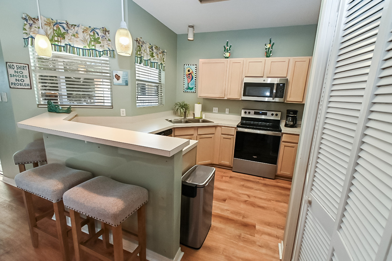 October 2025 4.00Excellent location. We enjoyed the pickleball, tennis and swimming pools. Access to the beach was excellent...just a short walk across the street. The beach service was an added bonus. The only downside was the dryer was not working so we needed to use the community laundry room which was just a short walk. The unit was mostly clean, however the living room furniture was showing its age and some of the tiles in the living room and kitchen were cracked. Nothing major and we would stay again.